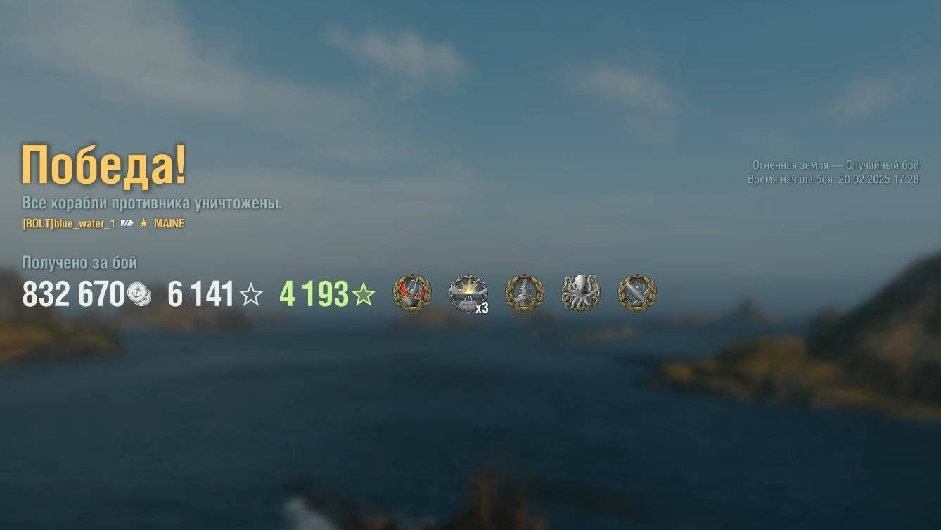 Супер линкор Maine. Игрок: blue_water_1 (EU). Карта: Огненная земля - Случайный бой. Урон: 378к. Maine - Супер линкор США.