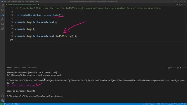 JavaScript Ejercicio: 1265 Usar la Función toISOString para Obtener la Fecha en Formato ISO