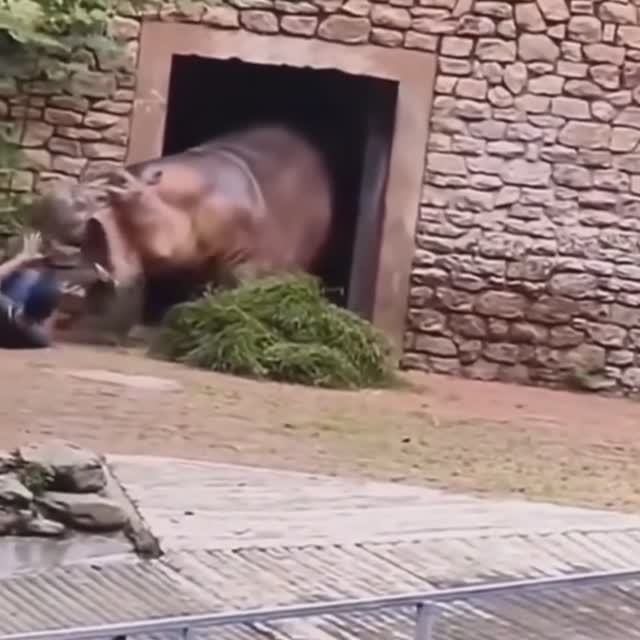 Бегемот напал на человека в зоопарке. Никто не пострадал