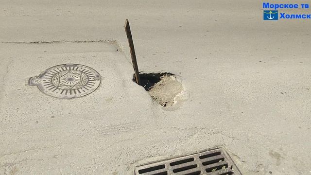 Очень глубокая дыра на улице Советской города Холмск
