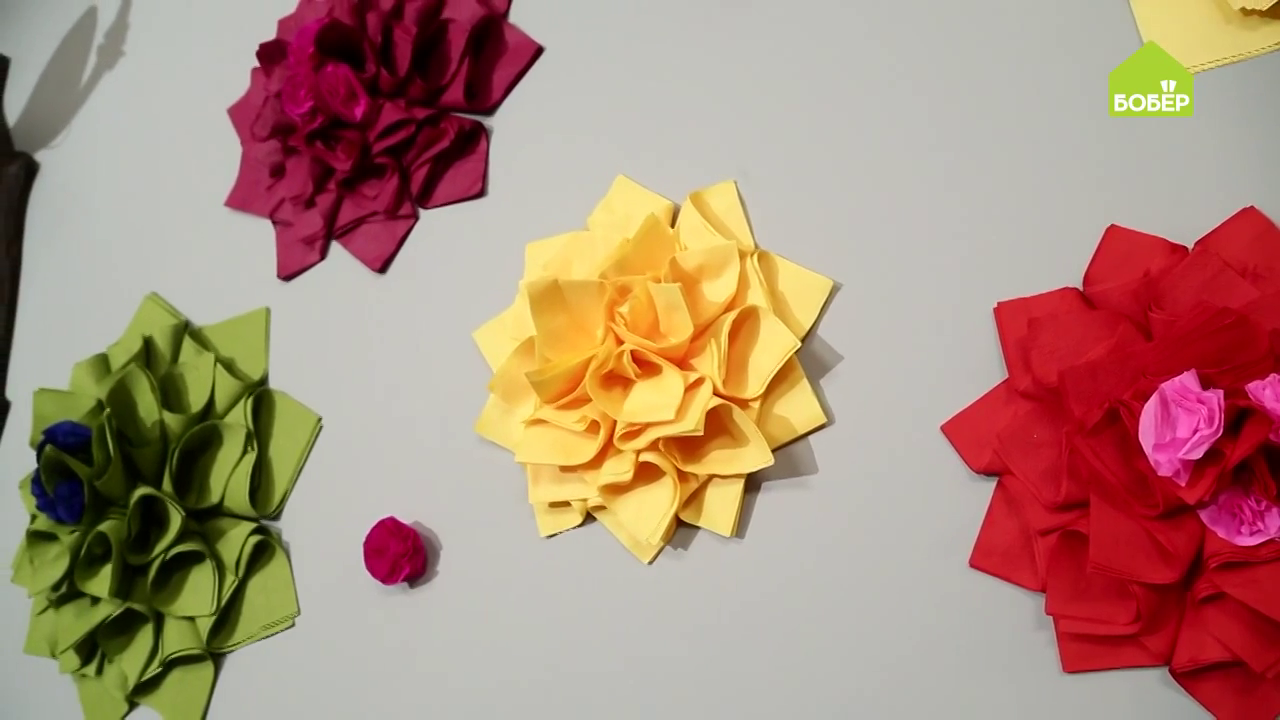 Украшение для дома! Делаем цветы из ярких салфеток. Новогодний декор из подручных материалов