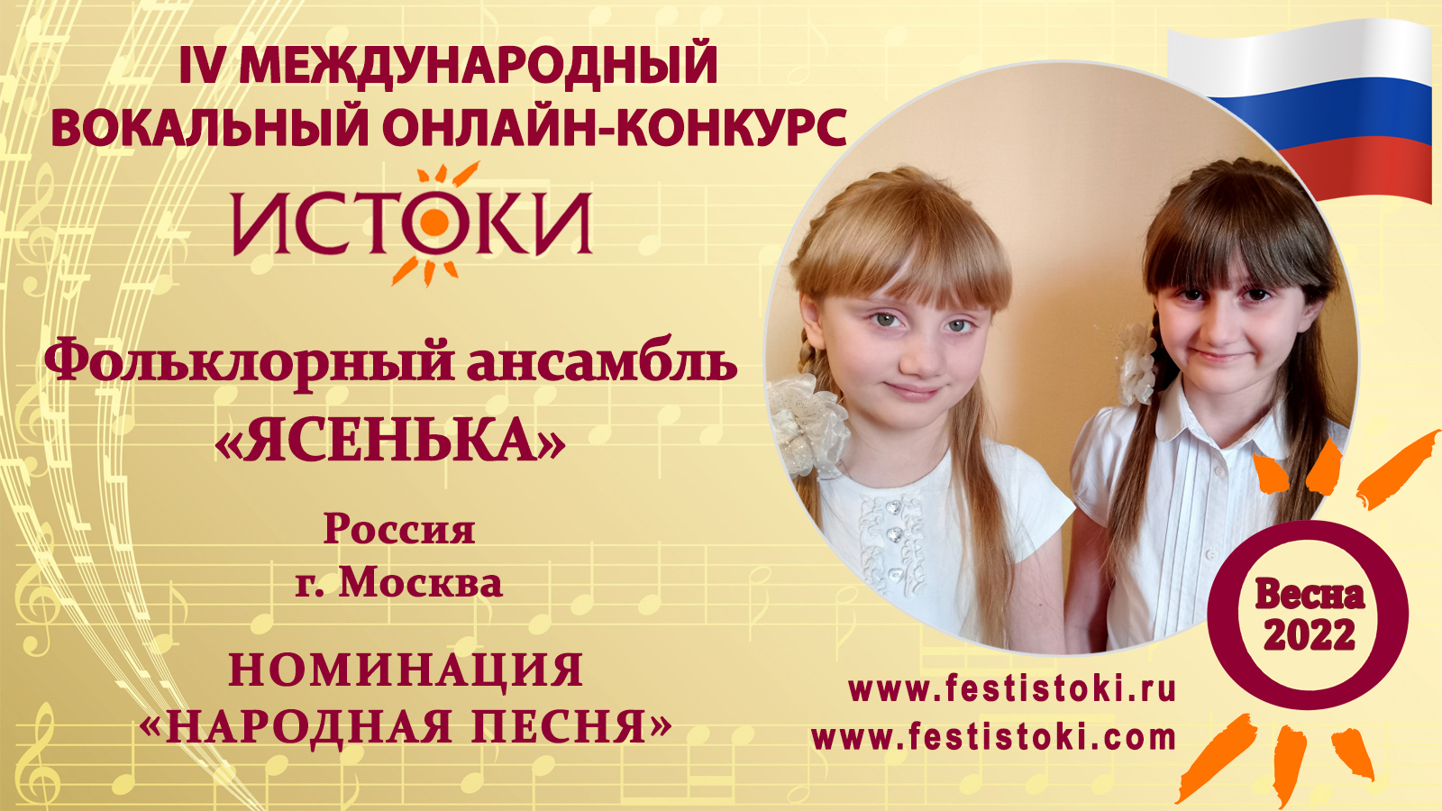 Лауреат II степени IV Международного вокального онлайн-конкурса «Истоки».Весна-2022. Номинация "Народная песня". Русская народная песня "Барыня". Сайт: www.festistoki.ru / www.festistoki.com E-mail: festistoki@mail.ru