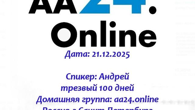 21.12.2025 Андрей трезвый 100 дней Санкт-Петербург Дг: aa24.online Тема: Первый,второй,третий Шаги