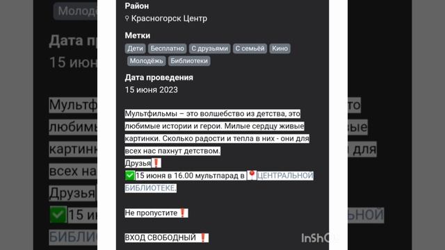 Завтра ( в среду) 15.06.2023 можно абсолютно бесплатно посетить МУЛЬТПАРАД в Центральной библиотеке города Красногорска. Бесплатные мероприятия для детей в городе Красногорске. #2023 #россия #подмосковье #город #дом #красногорск #дети #бесплатно
