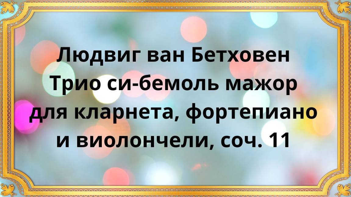 Людвиг ван Бетховен Трио си-бемоль мажор для кларнета, фортепиано и виолончели, соч. 11