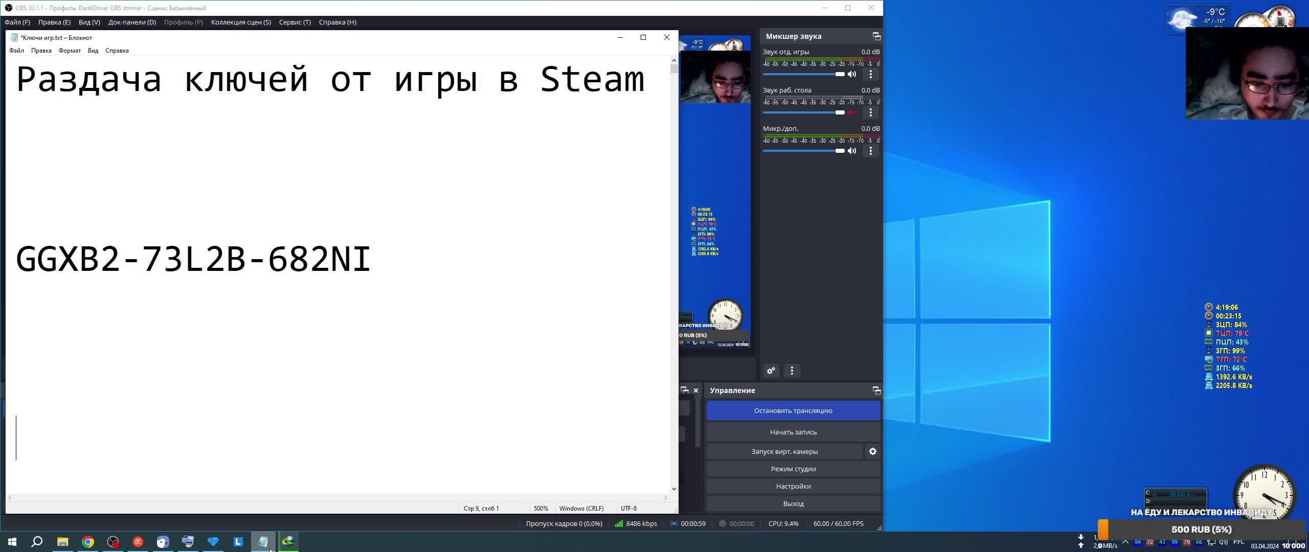 Раздача ключей от игры в Steam