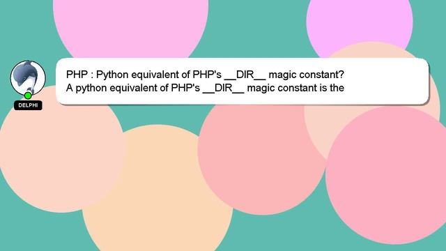 PHP : Python equivalent of PHP's __DIR__ magic constant? To Access My Live Chat Page, On Google, Search for "hows tech developer connect" I promised to reveal a secret feature to you, and now it's time to share it. This is a YouTube's feature which works on Desktop. First, Make sure this video is playing. Next, enter the letters 'awesome' on your keyboard. The progress bar on YouTube will be altered to a flashing rainbow. A brief introduction of myself, Nice to meet you, I am Delphi. Allow me to support you in answering your questions. PHP : Python equivalent of PHP's __DIR__ magic constant? If you have more specific queries, please feel free to reach out through comments or chat. If you have additional information or an answer to contribute, please feel free to comment below. Your answer will be recognized and valued, and I will 'heart' it to show my appreciation. constant? equivalent Python : magic PHP __DIR__ PHP's of