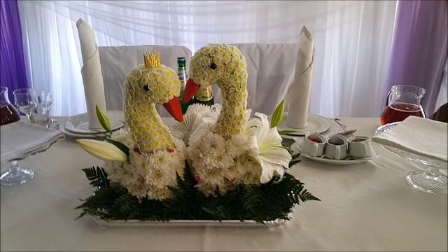 Свадебные лебеди из живых цветов