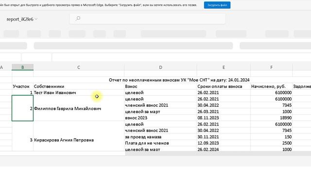 Формирование Отчета по неоплаченным взносам