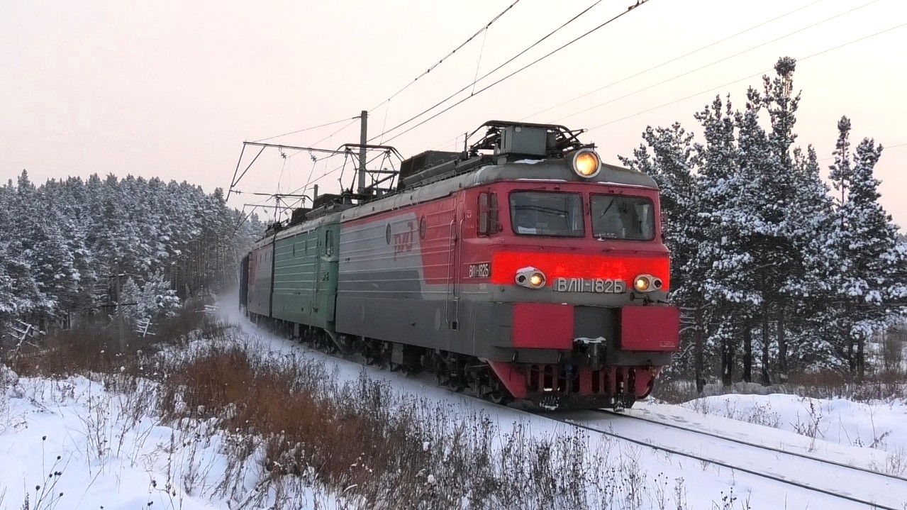 Электровоз ВЛ11-182/172 Б с грузовым поездом следует по перегону Разъезд 132 км - Алапаевск. Свердловская ЖД. Свердловская область, Россия. Приписка: ТЧЭ-17 Пермь-Сорт. 03.01.2021