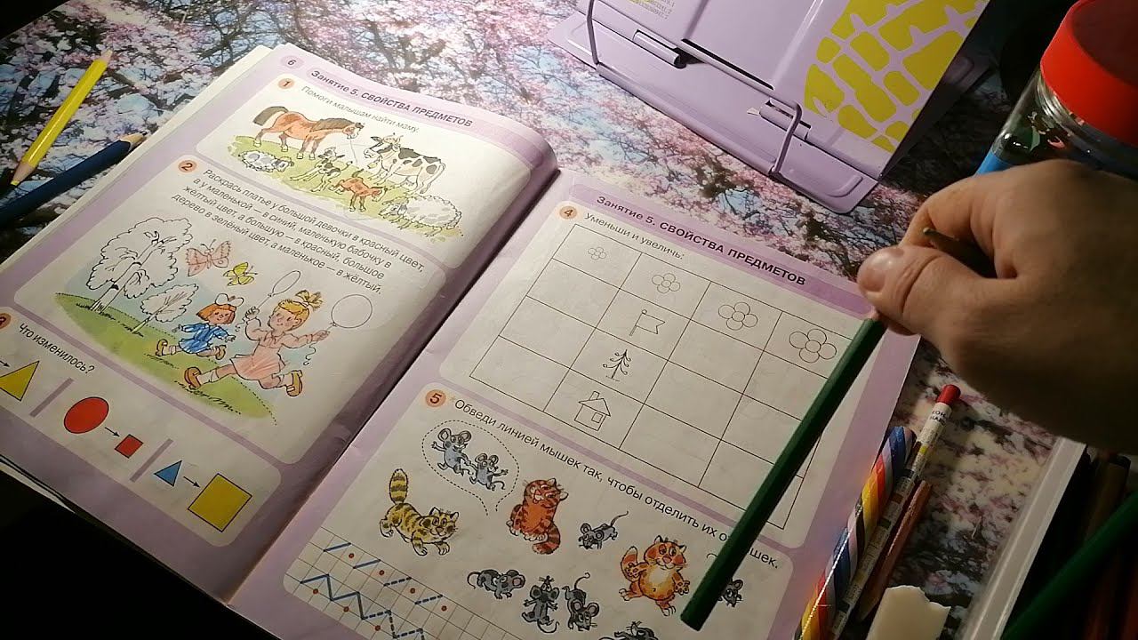 Занимаемся по пособию для дошкольников Л. Г. Петерсон, Н. П. Холина. Математика для дошкольников. 5 -6 лет. 05 занятие. РАЗ - ступенька, ДВА - ступенька. Часть 1. Свойства предметов.