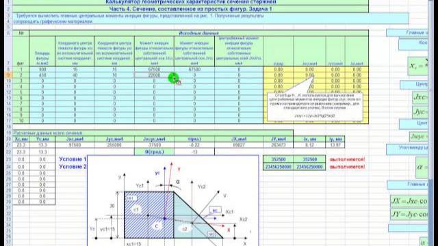 Страница подписки на все материалы http://ps1besplatno.mcdir.ru/ Удобный калькулятор расчета геометрических характеристик любых простых составных сечений (прямоугольник плюс круг, полукруг, треугольник ...). http://www.youtube.com/watch?v=1TYOTvETEwU Теги: момент инерции сечения,момент сопротивления сечения,центр тяжести сечения,главные оси,главные центральные моменты инерции сечения