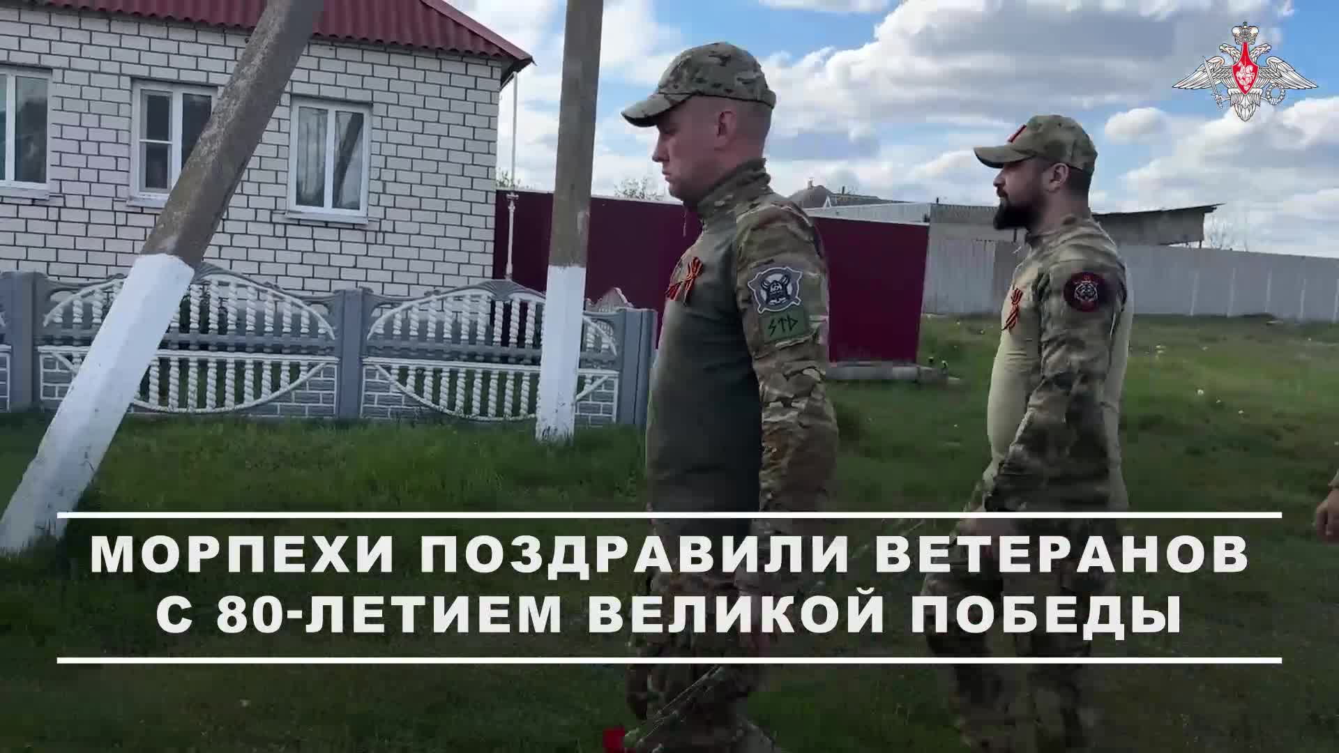 В Курской области бойцы 40-й бригады морской пехоты поздравили ветеранов с Днём Победы. Они вручили им цветы и памятные подарки. #80летПобеды 🔹 Минобороны России