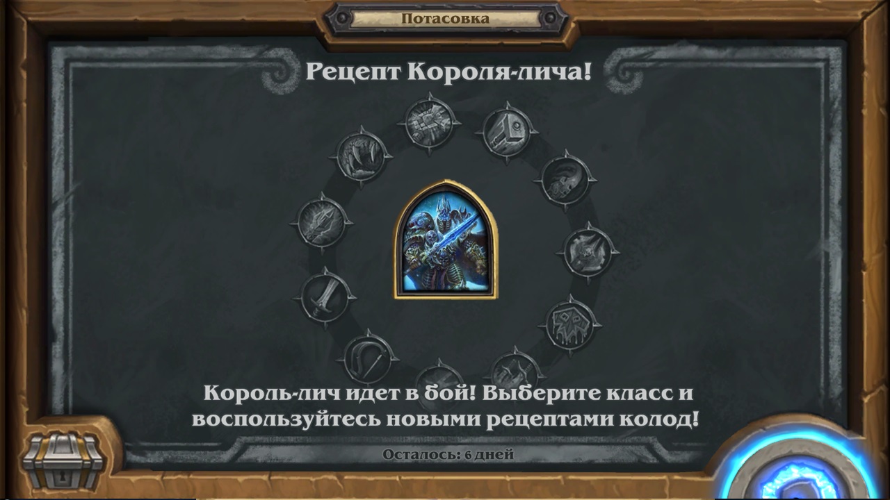 Потасовка в Hearthstone, в период с 07.12.2022 - 14.12.2022 Потасовка: Рецепт Короля-лича! Король-лич идет в бой! Выберите класс и воспользуйтесь новыми рецептами колод!