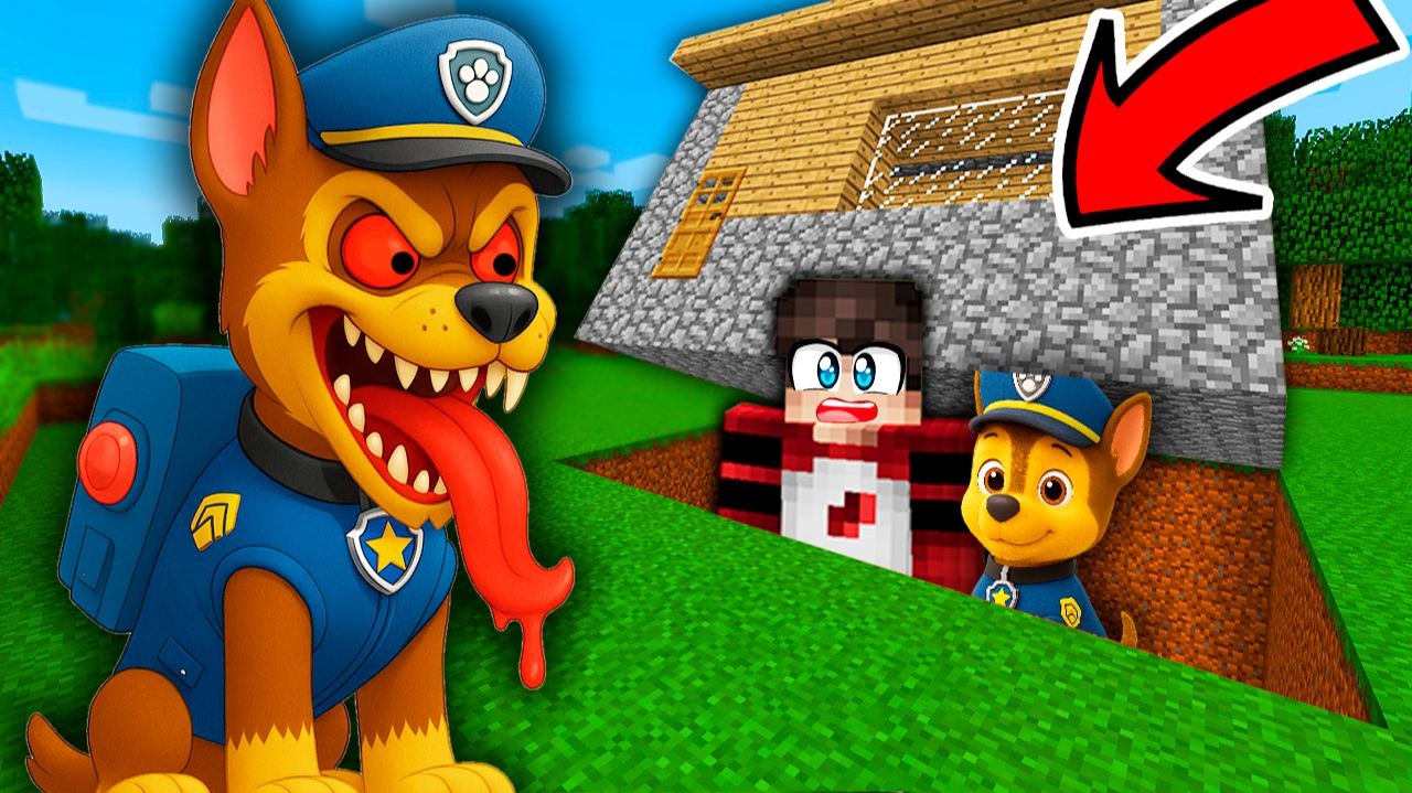 Я СПРЯТАЛСЯ под ДОМОМ ОТ ГОНЩИКА ЕХЕ ЩЕНЯЧИЙ ПАТРУЛЬ В МАЙНКРАФТЕ