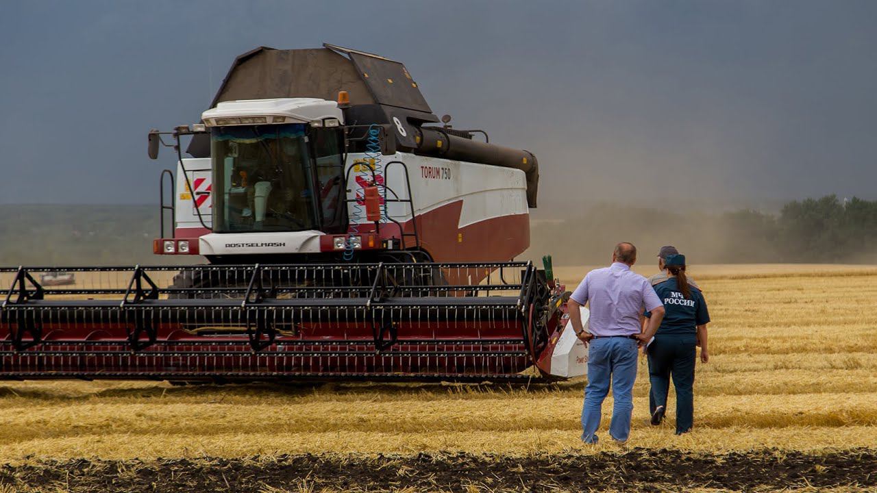 Сотрудники государственного пожарного надзора следят за пожарной безопасностью на уборочной