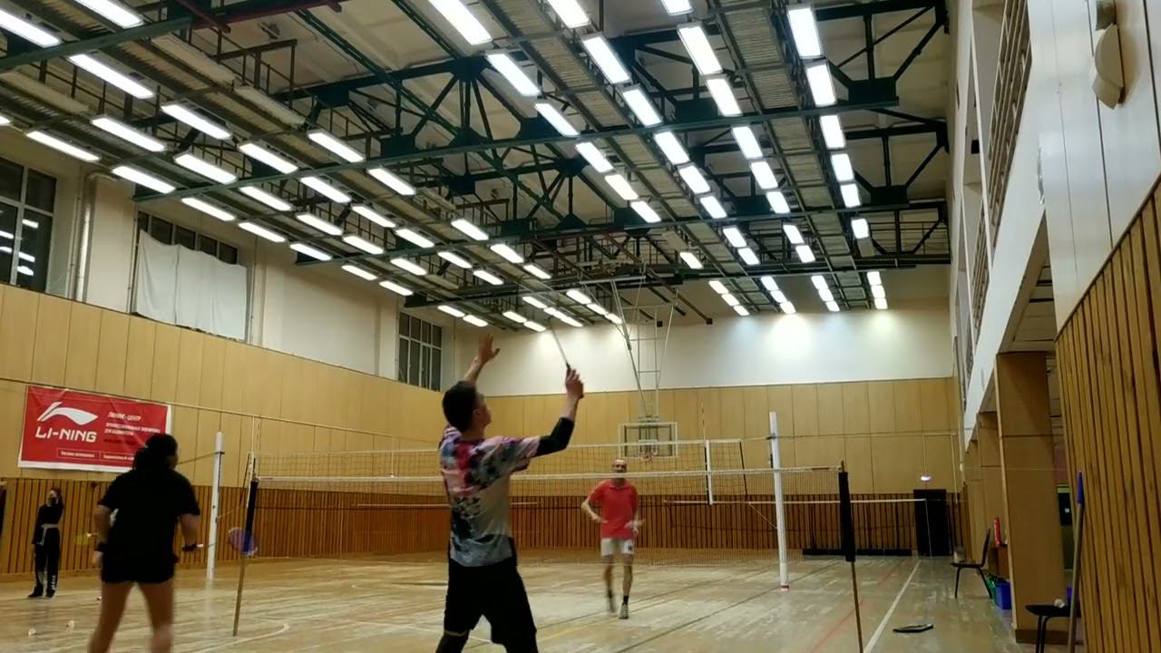 Тренировочная игра в бадминтон через сетку. Играют любители, новички и опытные бадминтонисты. Игра в Лестехе (МГУЛ ранее, сейчас называется филиалом Бауманки). Хочешь тоже играть? Приходи - https://badminton77.ru/map/4/ #badminton #badmintonlovers #badmintonrussia #lesteh #ЛесТех #бадминтон