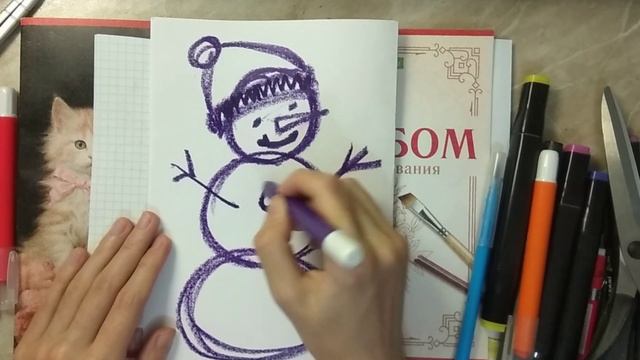 Как за пару минут нарисовать снеговика фломастером