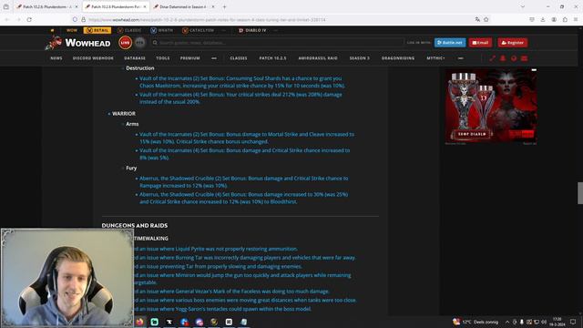 Streaming daily on https://www.twitch.tv/jeventestv Today we'll be covering some of the exciting news that has been delivered together with the 10.2.6 patch! We see a lot of tuning and both Arms Warrior and Fury Warrior are getting some love too! I'm very happy to see Warrior is getting some buffs and hope this will secure us a spot in the meta! We've seen Plunderstorm, Dinars and Tuning!