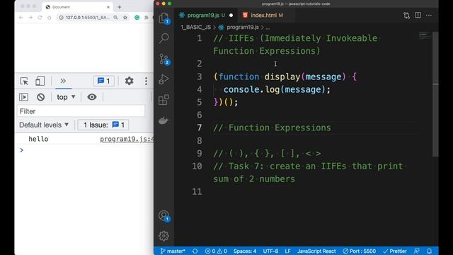 ? Find All the JavaScript Code on GitHub - https://github.com/anisul-Islam/javascript-tutorials-code ⭐️ Video Contents ⭐️ ⌨️ (00:00) Intro ⌨️ (00:04) Introduction ⌨️ (01:19) what is an IIFEs? ⌨️ (02:16) how to create an IIFEs? ⌨️ (02:16) Task 7: create an IIFE that prints the sum of 2 numbers ⌨️ (04:26) how to create function expression? ⌨️ (10:14) Outro ? Subscribe for more videos: https://www.youtube.com/channel/UCEXwc6mNh7Lakj6lX-7a2Mg ✅ website : https://www.studywithanis.com ✅ Facebook : https://www.facebook.com/anisul2010s ✅ Facebook page : https://www.facebook.com/studywithanis/ ✅ LinkedIn : https://www.linkedin.com/in/anisul2020/ ✅ GitHub: https://github.com/anisul-Islam ? Web development? checkout following playlists : ? HTML5 Series: https://www.youtube.com/playlist?list=PLgH5QX0i9K3oHBr5dsumGwjUxByN5Lnw3 ? CSS3: https://www.youtube.com/playlist?list=PLgH5QX0i9K3qjCBXjTmv7Xeh8MDUUVJDO ? bootstrap: https://www.youtube.com/playlist?list=PLgH5QX0i9K3oC_wmWEZa2xWxJauIRQ9kG ? JavaScript: https://www.youtube.com/playlist?list=PLgH5QX0i9K3qzryglMjcyEktz4q7ySunX ? jQuery: https://youtube.com/playlist?list=PLgH5QX0i9K3pSJG9Hwjnykd0hLGEsW4DB ? SASS: https://youtube.com/playlist?list=PLgH5QX0i9K3qOvGYtFb3Z7KVMLrijYdqO ? React: https://youtube.com/playlist?list=PLgH5QX0i9K3rGtitufynBKMy5gAFpa1y8 ? Node and express.js: https://www.youtube.com/playlist?list=PLgH5QX0i9K3r6ZGeyFnSv_YDxVON2P85m ? MySQL Database series: https://www.youtube.com/playlist?list=PLgH5QX0i9K3qLcx9DvVDWmNJ7riPvxzCD ? Programming languages? check out following playlists: ? C programming: https://youtube.com/playlist?list=PLgH5QX0i9K3pCMBZcul1fta6UivHDbXvz ? C Pattern Printing: https://youtube.com/playlist?list=PLgH5QX0i9K3oTxQhx2kejYmQn6qtRULCD ? C++ : https://youtube.com/playlist?list=PLgH5QX0i9K3q0ZKeXtF--CZ0PdH1sSbYL ? Python: https://youtube.com/playlist?list=PLgH5QX0i9K3rz5XqMsTk41_j15_6682BN ? Java: https://youtube.com/playlist?list=PLgH5QX0i9K3oAZUB2QXR-dZac0c9HNyRa ? Java swing: https://youtube.com/playlist?list=PLgH5QX0i9K3rAHKr6IteF5kdgN6BorH9l ? Android development? check out the following playlists: ? Android development series: https://youtube.com/playlist?list=PLgH5QX0i9K3p9xzYLFGdfYliIRBLVDRV5 ? HSC Students? Are you worried about ICT? I have created 377 videos for you. check out following playlists- ? ICT (HSC) Series- https://youtube.com/playlist?list=PLgH5QX0i9K3o8Y-CKhmyodbfHAc9VSVOv ? HSC ICT Chapter 3.1 (Number System) | CQ + MCQ: https://youtube.com/playlist?list=PLgH5QX0i9K3rc4ZDQh0Rae_7s0CQxpT68 ? HSC ICT Chapter 3.2 (Digital Device) | CQ + MCQ: https://www.youtube.com/playlist?list=PLgH5QX0i9K3padw-LmlYWk9-1gRTQ_3bS ? HSC ICT Chapter 4 (Web design & HTML) + MCQ + CQ: https://www.youtube.com/playlist?list=PLgH5QX0i9K3rFbxSU4FDLjoLOf0khoOLM ? HSC ICT Chapter 5 (Programming Language - C) | CQ + MCQ: https://www.youtube.com/playlist?list=PLgH5QX0i9K3oyeTjSeouVTyLPgS28OoGm ? HSC ICT Chapter 6 (Database Management System): https://www.youtube.com/playlist?list=PLgH5QX0i9K3ohVxegHxuyvg1GsA48rCC3 ? CSE Students? checkout following playlists : ? Discrete Math Series: https://youtube.com/playlist?list=PLgH5QX0i9K3rYy9DVhk28m8enSo8xxiZ3 ? Theory of Computation (TOC): https://www.youtube.com/playlist?list=PLgH5QX0i9K3qw5pu16QgnKNj91Rnjoyd0 ? Compiler: https://www.youtube.com/playlist?list=PLgH5QX0i9K3oWTwTgILA7v9oysoDgkJDg ? Operating System: https://www.youtube.com/playlist?list=PLgH5QX0i9K3r_SuT0AnOEoElfQQPgkBIq ? AI Bangla: https://www.youtube.com/playlist?list=PLgH5QX0i9K3oFAaeJxjDWA8kEbMutzV6V ? AI (English): https://www.youtube.com/playlist?list=PLgH5QX0i9K3rRVV7oeML93OVAxqQ-CvzV ? Numerical Method: https://www.youtube.com/playlist?list=PLgH5QX0i9K3oKFrSOo4Kwns1-vTZmKQ7z ? Networking: https://www.youtube.com/playlist?list=PLgH5QX0i9K3p5OI88r3ob-otmKqIm_DbS ? MS Office? Trying to learn MS office to improve your skill? checkout following playlists : ? MS Word: https://www.youtube.com/playlist?list=PLgH5QX0i9K3p21lsneT3cW4CJL4Bd1lJ2 ? MS Excel: https://www.youtube.com/playlist?list=PLgH5QX0i9K3ohKCQMR7aopneByGX05iSK ? MS PowerPoint (Sylheti) : https://www.youtube.com/playlist?list=PLgH5QX0i9K3pBnrckqfJ2zn7FL6Q_LNcm ? Replying to your comments: https://www.youtube.com/playlist?list=PLgH5QX0i9K3rOy_3R7lYlN92BggSpbWTY #javascript #anisul_islam #javascript_bangla_tutorial #web_development #bangla_web_development #bangla_javascript #javascript_anisul_islam #anisul_islam_javascript #es6_anisul_islam #html #html_anisul_islam #css #js #javascript_projects #projects #js_es6 #javascript_es6