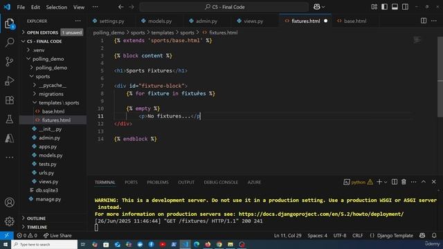 3 - Displaying fixtures on the webpage