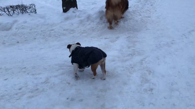 Бульдожка охотится на бурят-монгольского волкодава || Английский бульдог Черри играет со Ставром!
