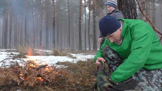 Поход в лес выживание еда на костре купаты с картошкой и повстречали (болотосонку)