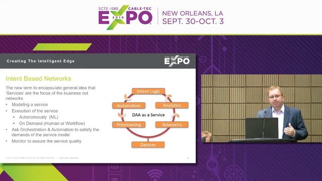 Innovations in Distributed Access Architectures: Switch-on-a-Pole and the Intelligent Edge As the number of subscribers-per-node decreases, the cost-per-subscriber increases, requiring an architecture that maximizes invested capital while allowing for flexible adaption of new technologies. This session will explore Comcast’s use of grey optical aggregation (GOA) nodes and a low power, environmentally-hardened “Switch On A Pole” (SOAP), which muxes multiple 10G DWDM Ethernet links and leverages coherent optical links of 100Gbps to extend the headend into the outside plant and as close to customers as possible – while lowering the cost of DOCSIS-based DAA networks. Additionally, CommScope will explain the nuts-and-bolts of deploying more R-PHY devices per technician, and how investments in distributed access architecture (DAA) equipment can be leveraged to deploy other DAA device types and services by adding intelligence to the edge of the network through service orchestration and intent-based network modeling. Moderator: Robert Gaydos, Comcast Fellow Speakers: Chris Busch, Engineering Fellow, CommScope Venk Mutalik, Executive Director, HFC Architecture, Comcast
