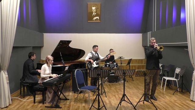 исп. инструментальный ансамбль преподавателей в составе: Роман Иванов (труба), Николай Сидоренко (фортепиано), Татьяна Соколова (синтезатор), Денис Шушков (бас-гитара), Александр Второв (ударные). ДМШ им. А.Б.Гольденвейзера, Большой зал 2 октября 2021 г. 2К