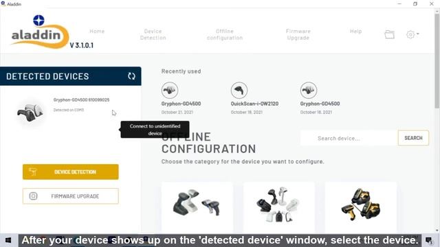 How to turn off the green spot for Datalogic GD4590 using 'Aladdin' software