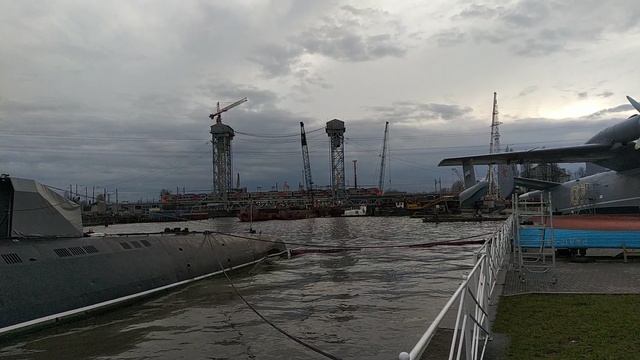 Подводная лодка, самолёт и мост, вид от музея Мирового океана, г.Калининград