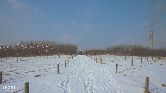 [4K HDR] Seoul Morning Walk In The Snowy Haneul Park Ambience Sounds ASMR