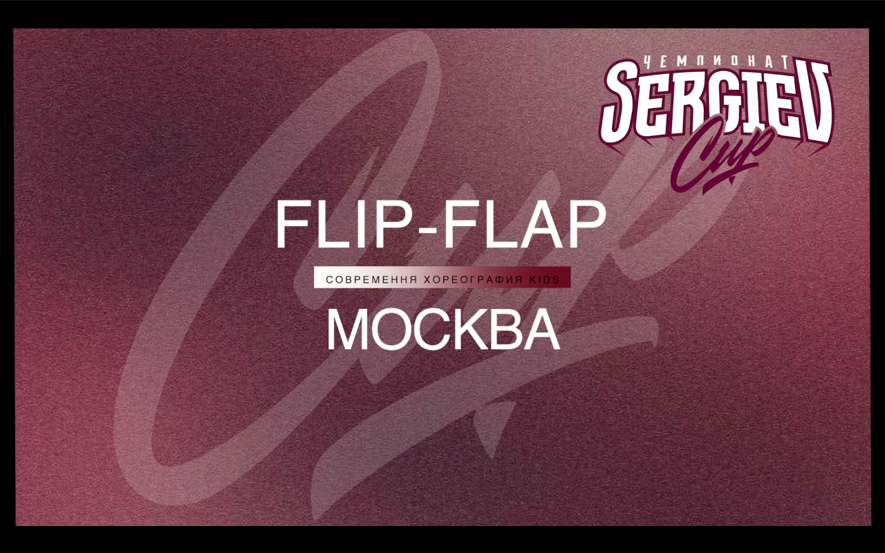 SERGIEV CUP 2024 Flip-Flap Номинация: Современная хореография Категория: Kids Жюри чемпионата: Тоха Андреев Артем Соляник Артем Нефедов ОРГАНИЗАТОР МЕРОПРИЯТИЯ: TRIASH PRODUCTION Информация о предстоящих чемпионатах: Telegram : https://t.me/triash_prod ВК : https://vk.com/sergiev_cup YOUTUBE : https://www.youtube.com/channel/UCPDX3Znh7OJQqmb0v5u1MHw Дополнительная информация : +7 (916) 533-50-63