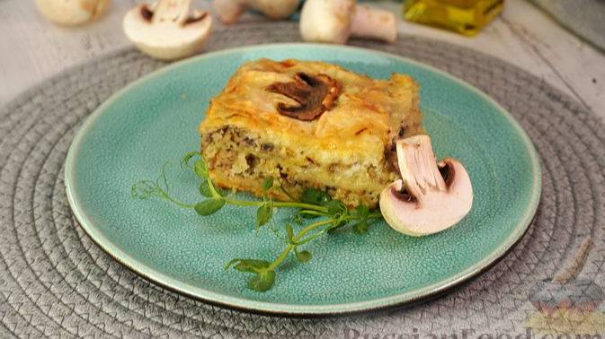 Этот пирог готовится с мясным фаршем, который предварительно обжаривается с луком и грибами и приправляется мускатным орехом. Сочная и ароматная начинка прекрасно гармонирует с хрустящим тестом. #ПирогИзТестаФило #ПирогИзТестаФилоСФаршем #ПирогИзТестаФилоСФаршемИГрибами #ДомашнийПирогСлоёный #МяснойПирогСТестомФило