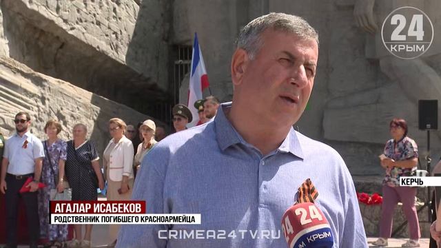 В Керчь прибыли родственники погибшего солдата Магомедкерима Исабекова из Республики Дагестан. Церемония состоялась у подножия Аджимушкайских каменоломен. Личность солдата удалось установить по медальону, который был найден в окрестностях города-героя в прошлом году. Подробности расскажет наш корреспондент.