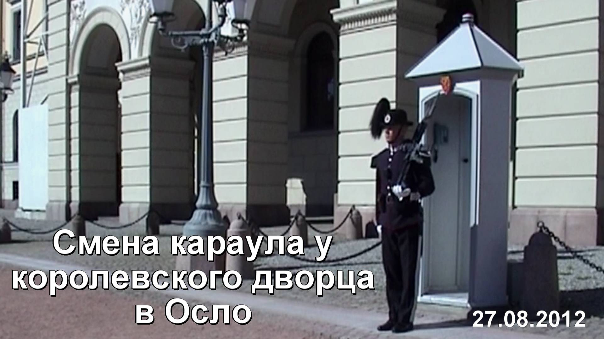 Чтобы посмотреть смену гвардейского караула, заранее прибыл к королевскому дворцу. Дворец построен в неоклассическом стиле, строительство было завершено в 1849г. Дворец окружен парком с прудами, статуями и ухоженными садами. Девушка на самоходной косилке тщательно подстригает королевские газоны. Где-то за углом строительные рабочие производят какой-то ремонт. Так что на записи периодически присутствуют посторонние звуки. Пофотографировал гвардейцев. Дождался смены караула, которая происходила скромно и штатно и началась в 12:00. Королевские гвардейцы отличились во время Второй мировой войны - помешали немцам захватить королевскую семью и членов кабинета министров в апреле 1940г. Позже они отчаянно сражались с захватчиками и получили от немцев за свирепость и тёмный цвет формы одежды прозвище «Черные дьяволы». Особенностью гвардии является наличие почётного командира - королевского пингвина Сэра Нильса, который официально числится почётным командиром гвардии. При этом пингвин содержится в зоопарке г. Эдинбург. Гвардейцы приметили забавную птицу в 1961г., когда приезжали в Эдинбург на парад военных оркестров и «усыновили» его. Имя пингвин получил в честь лейтенанта Нильса Эгелиена, который первым обратил на него внимание, а фамилию – в честь короля Норвегии Улафа V. Первоначально пингвину Нильсу Улафу было присвоено звание вице-капрала, а к моменту своей смерти в 1987 г. он «дослужился» до сержанта. Его преемник и полный тезка сейчас находится в чине полковника. В 2008 г. Нильса Улафа посвятили в рыцари, поэтому к его имени следует добавлять слово «сэр». Примечательной деталью формы гвардейцев является шляпа с перьями, скопированная со шляп итальянской королевской гвардии, которые понравились шведской принцессе Луизе (прабабушке Его Величества Короля Харальда V). В составе гвардии предусмотрен военный оркестр, но в повседневные дни во время смены караула он не используется.