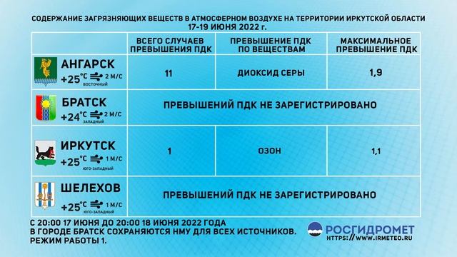 [20.06.2022] Мониторинг состояния атмосферного воздуха 17-19.06.2022