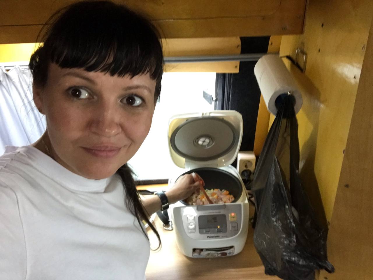 Процесс приготовления в мультиварке в процессе езды/движения на автодоме #autodomt1, #Беляш, #кастомваген #vanlife #автопутешествиепороссии #автопутешествие #автомобили #автобус