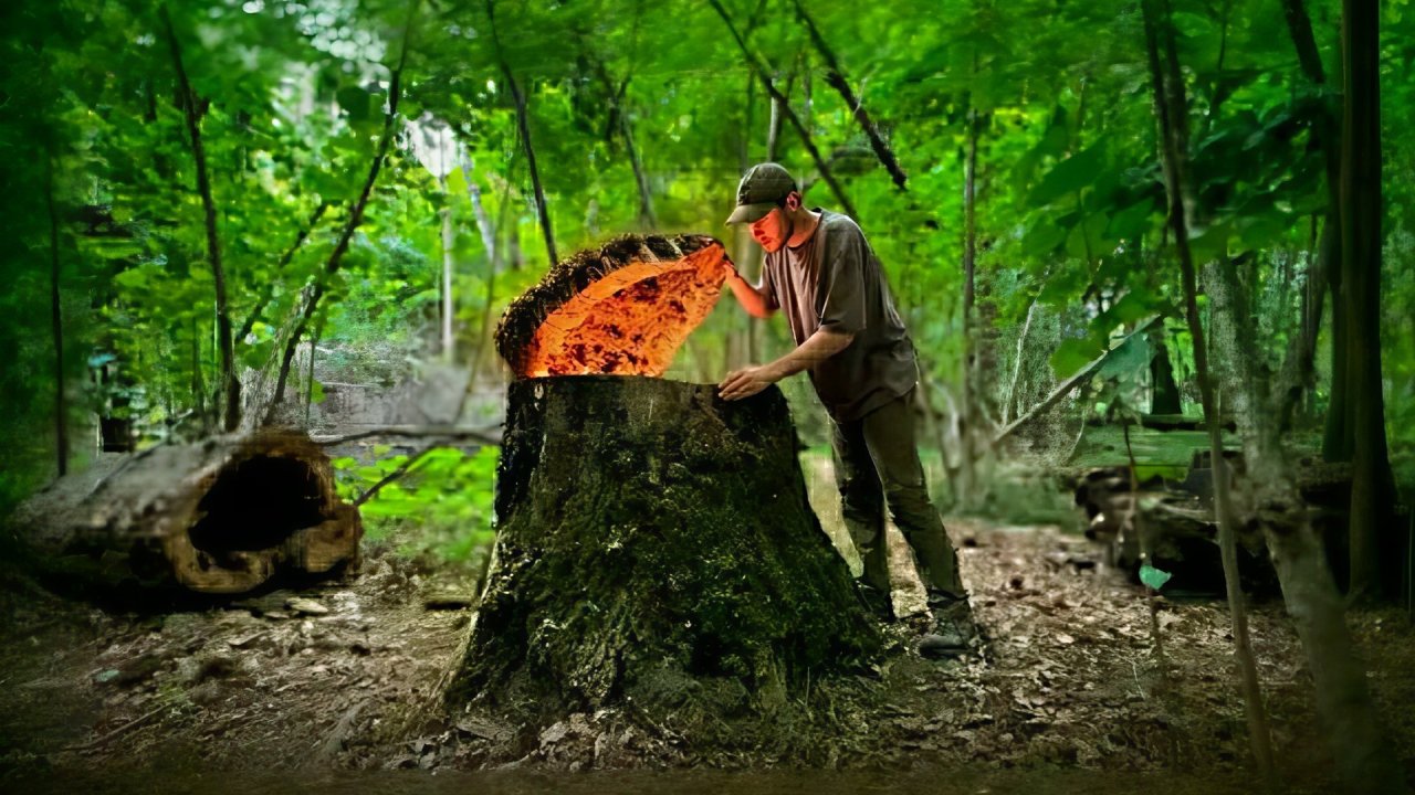 Строю убежище под землей и большим пнем. Скрытая хижина в лесу. Выживание и бушкрафт