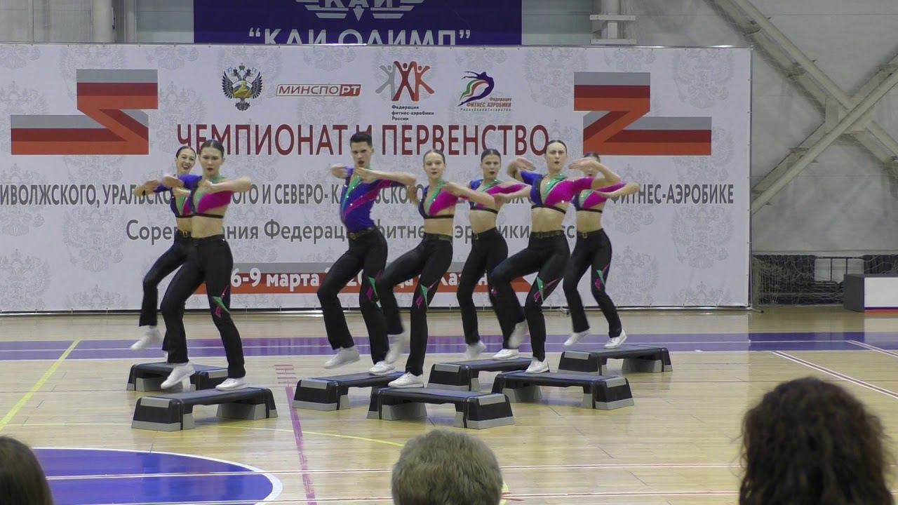 Степ-аэробика. Юниоры-юниорки 14-16 лет. Соревнования Первенства Приволжского, Южного, Северо-Кавказского и Уральского федеральных округов по фитнес-аэробике в 2020 году. РТ, г. Казань, ул. Чистопольская, 67, КСК "КАИ Олимп" 06-09 марта 2020 г.