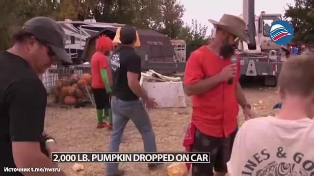 Гигантская 900-килограммовая тыква раздавила старый автомобиль на фестивале