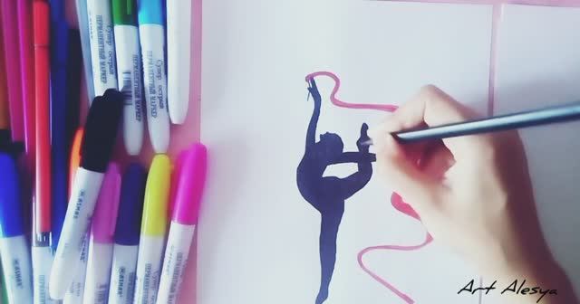 Рисую гимнастку чёрным маркером!✨