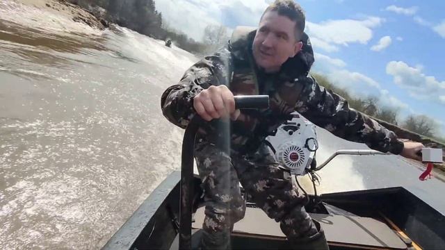 р.Киржач куча байдарок и лодки Гунч под моторами болотоходами Max motor