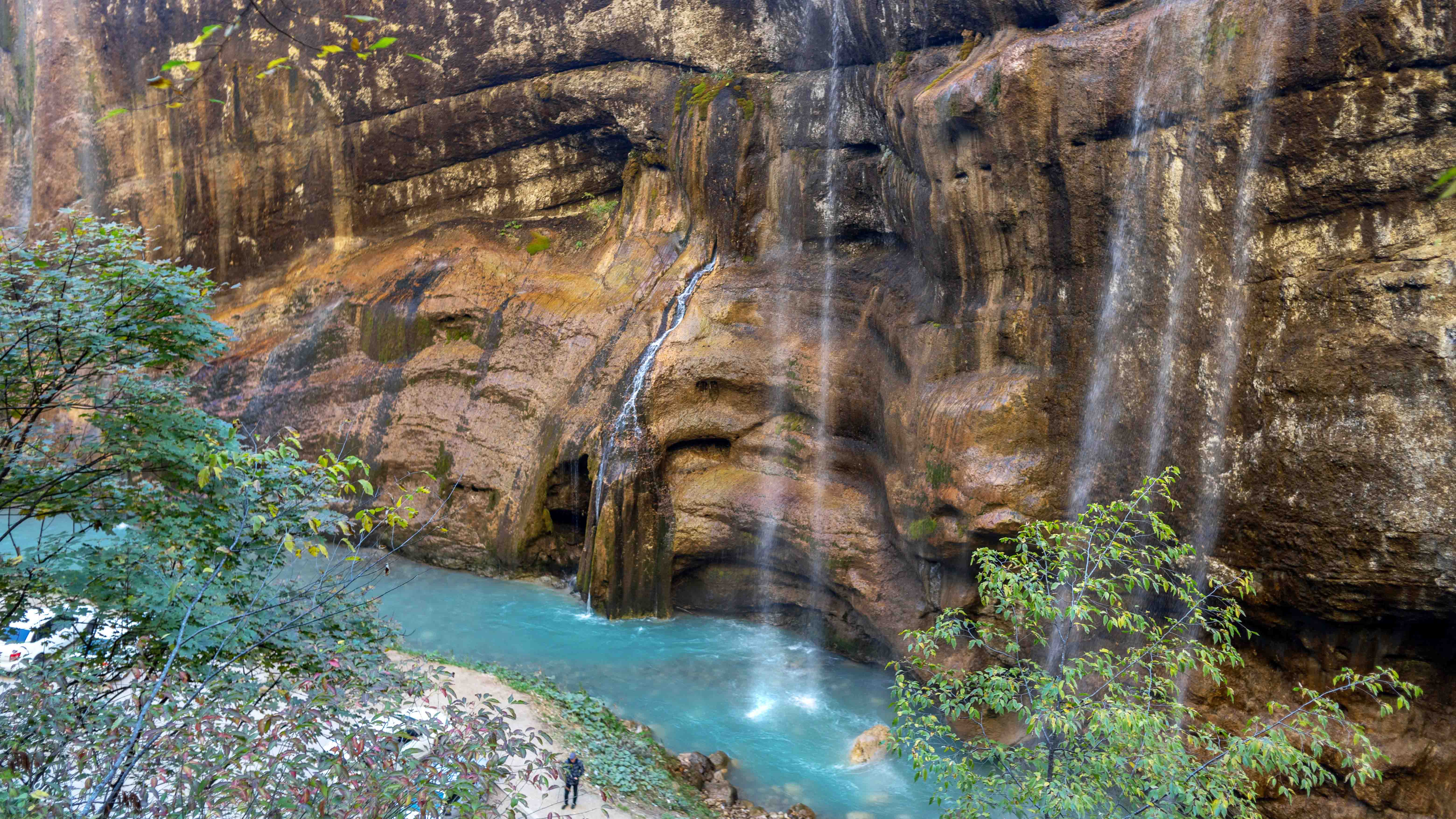 Эту стену водопадов называют Су-Аузу, что с кабардинского переводится как «Вода из горла». Осенью потоки воды становятся менее бурными, чем летом, но в любом случае вызовут восторг у каждого.