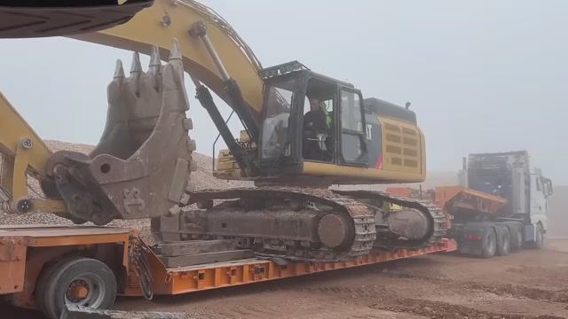 Тяжелая транспортировка: Экскаватор CAT 352F и дробилка Powerscreen