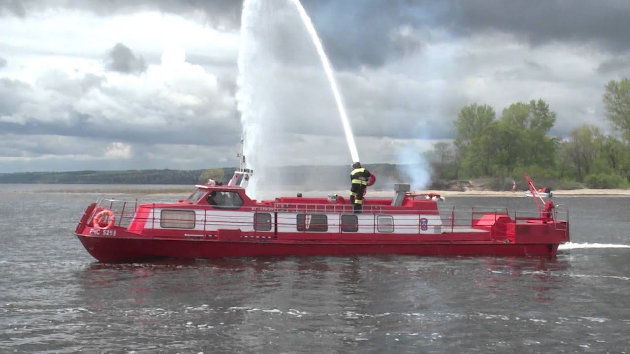 Пожар на острове потушен. Пострадавший эвакуирован на берег. Учения МЧС и Минздрава в Казани.