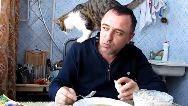 Кот просит кусок мяса