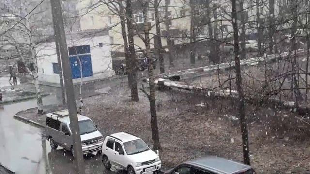 Погода на Пасху, посыпал крупный снег остров Сахалин