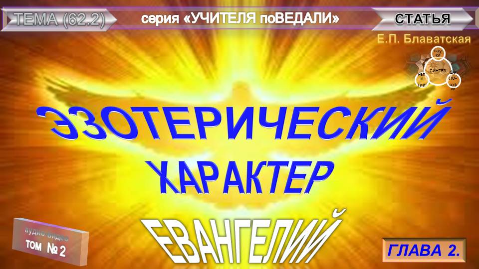 (2) ЭЗОТЕРИЧЕСКИЙ ХАРАКТЕР ЕВАНГЕЛИЙ-2 глава стать Е.П. Блаватской (1831-1891)