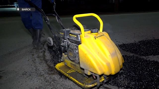 Ремонт дорог в Бийске начали проводить по ночам ("Будни", 11.04.25г., Бийское телевидение)